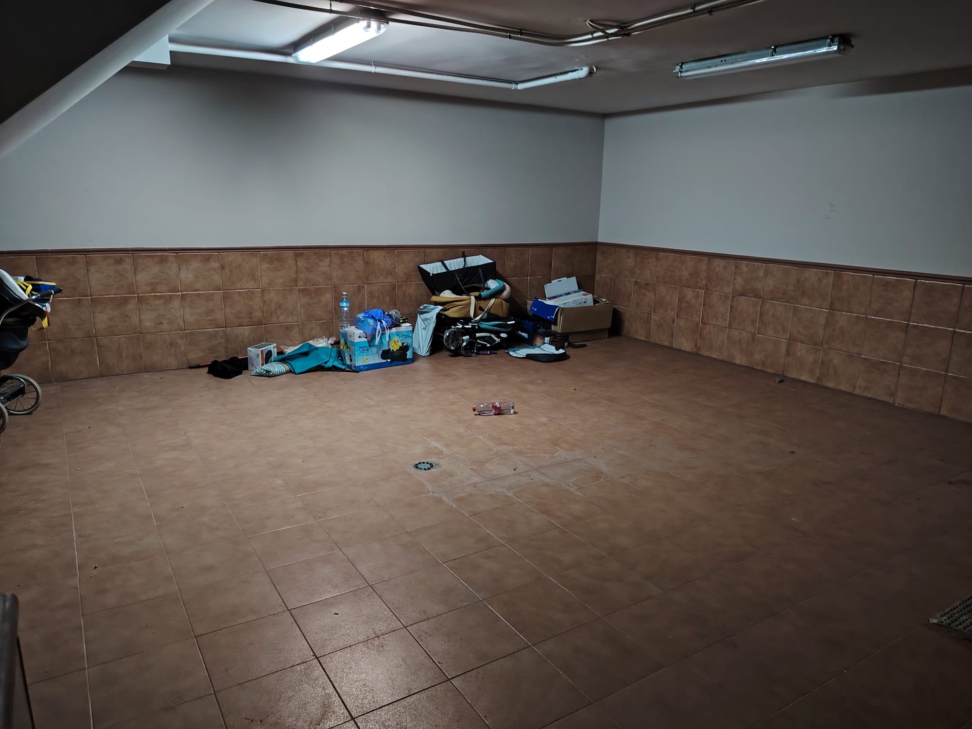 -Planta baja con salón campero y chimenea, un baño, una habitación con armarios empotrados y una gran cochera.