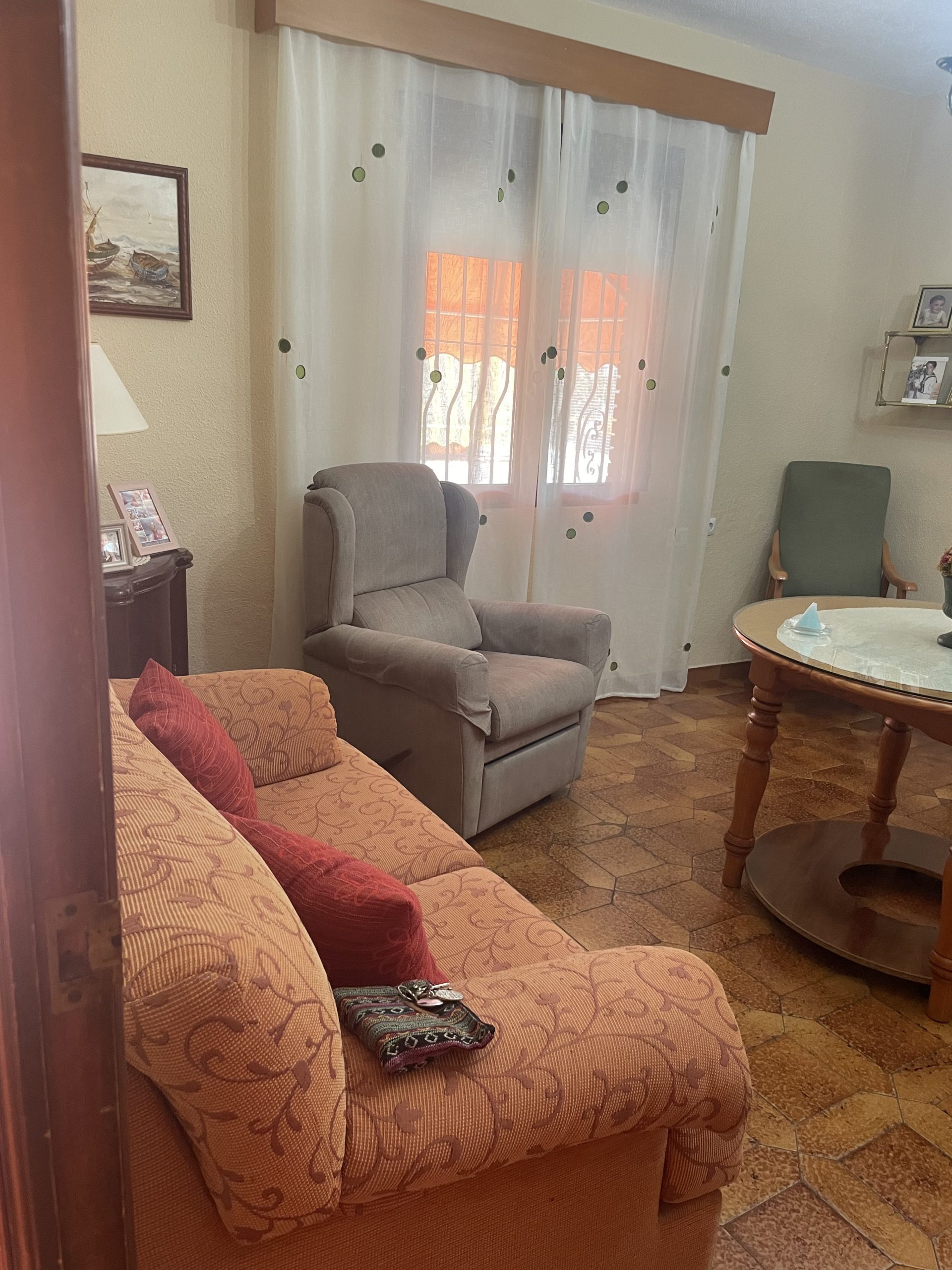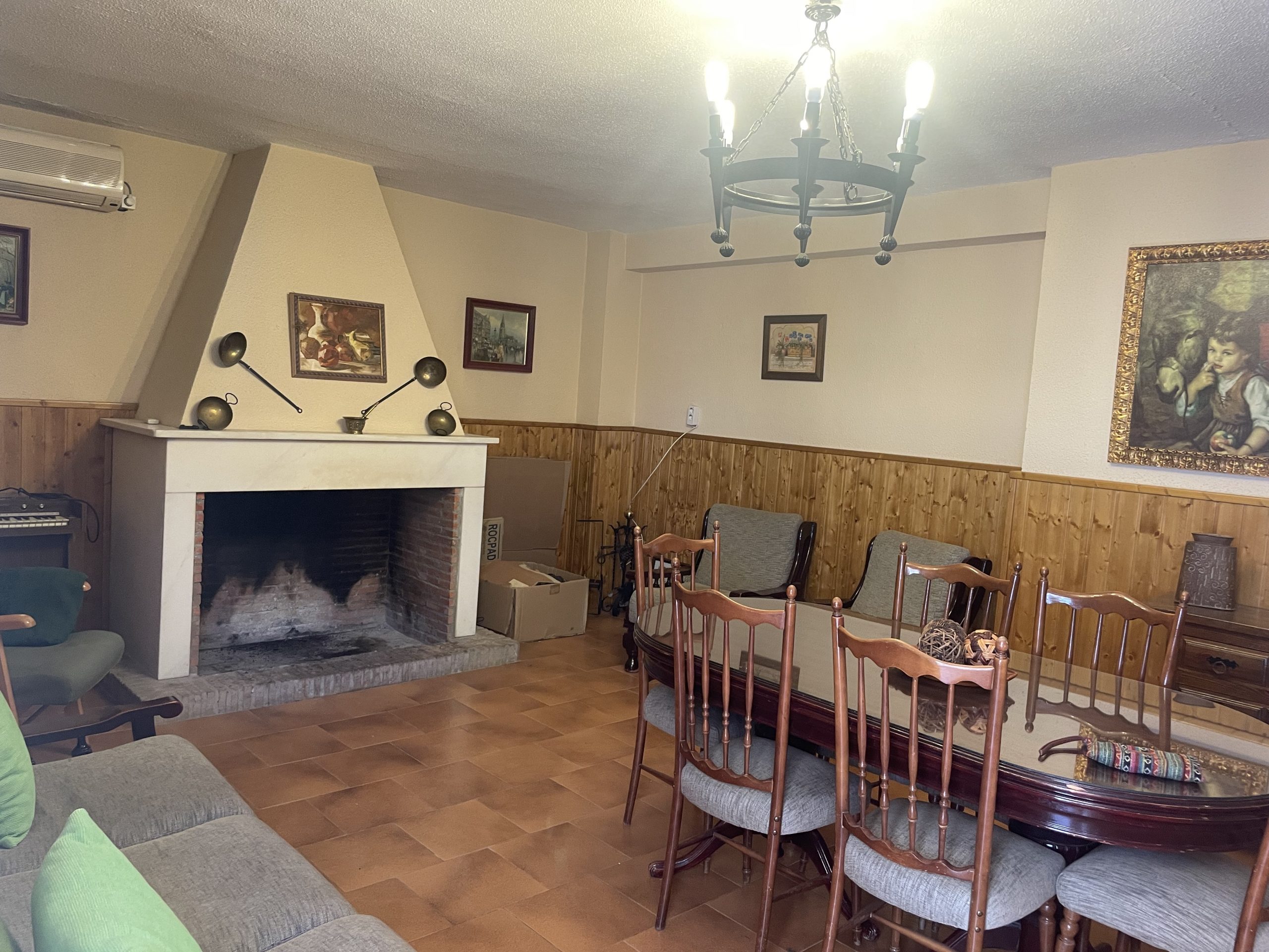 -Planta baja con un magnífico salón campero con chimenea, una habitación con capacidad para dos camas y armario, cocina-comedor, un cuarto de almacenaje, un baño y una amplia cochera. (Toda la vivienda cuenta con las ventanas nuevas y sus respectivas mosqueteras.)